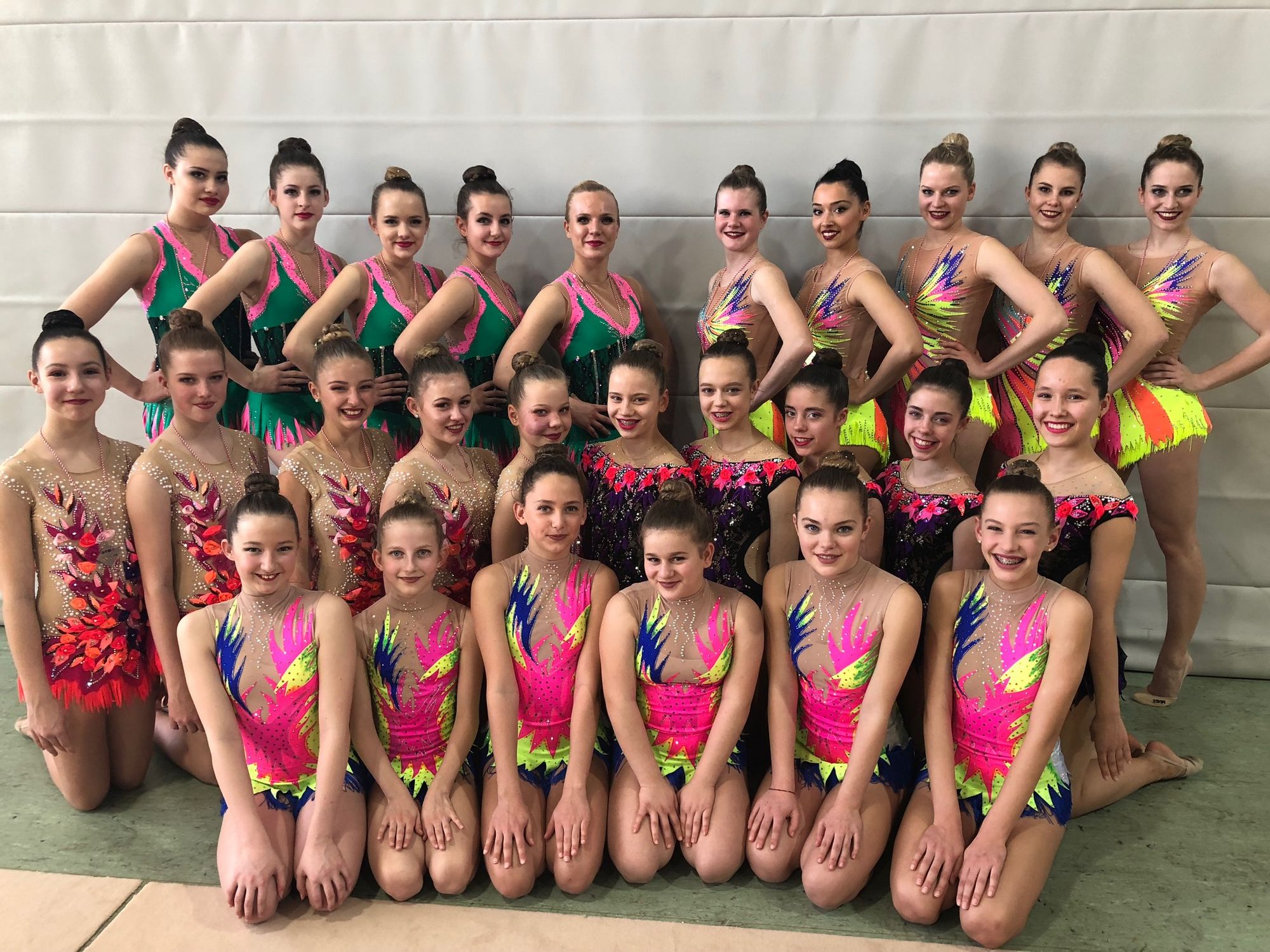 Die drei Gruppen die in der Jugendleistungsklasse starten, konnten mit guten Übungen die vorderen Plätze erreichen, die Silbermedaille ging an die JWK II, nur knapp am Siegertreppchen vorbei mit dem 4. Platz die JWK I und direkt dahinter die JWK III auf dem 5 Platz. In der freien Wettkampfklasse konnten sich beide Gruppen einen Platz auf dem Treppchen erturnen. Eine Bronzemedaille ging an die FWK II und die Goldmedaille erreichte die FWK I.