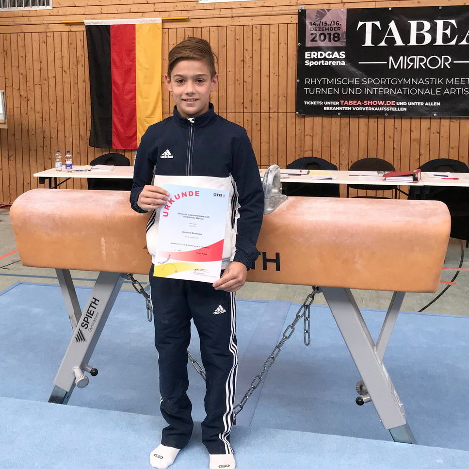 In den vergangenen Jahren haben es einige Turner des TSV Schmiden zu den Deutschen Jugendmeisterschaften geschafft, doch bisher konnte sich keiner in der jüngsten Altersklasse ins Feld der Besten turnen. Dimitrios Rimenidis verpasste das Treppchen nur knapp und wurde Vierter. Nach den Pflichtübungen lag er noch auf Platz 8. Deutscher Jugendmeister wurde Jukka Nissinen aus Bad Homburg.