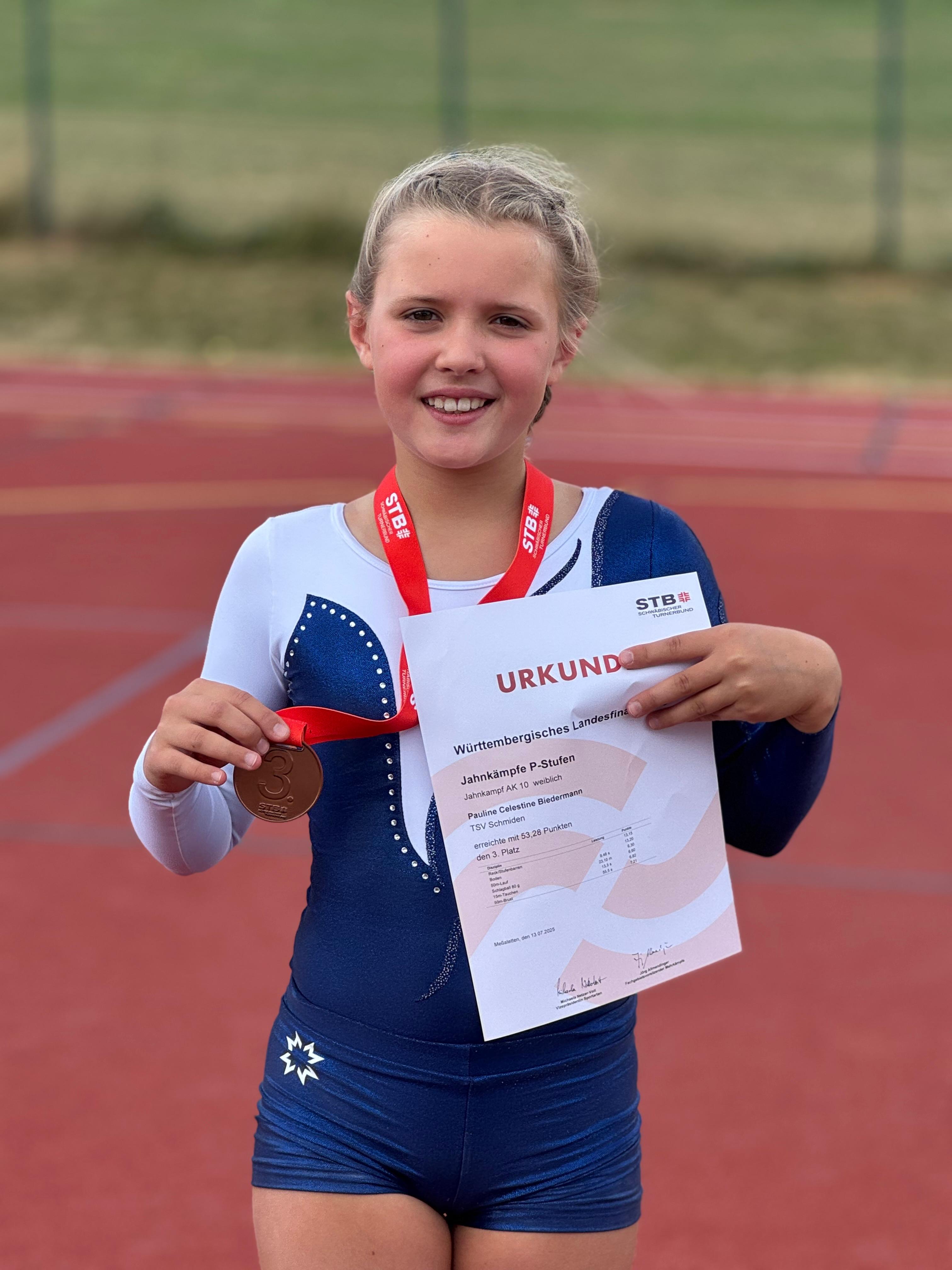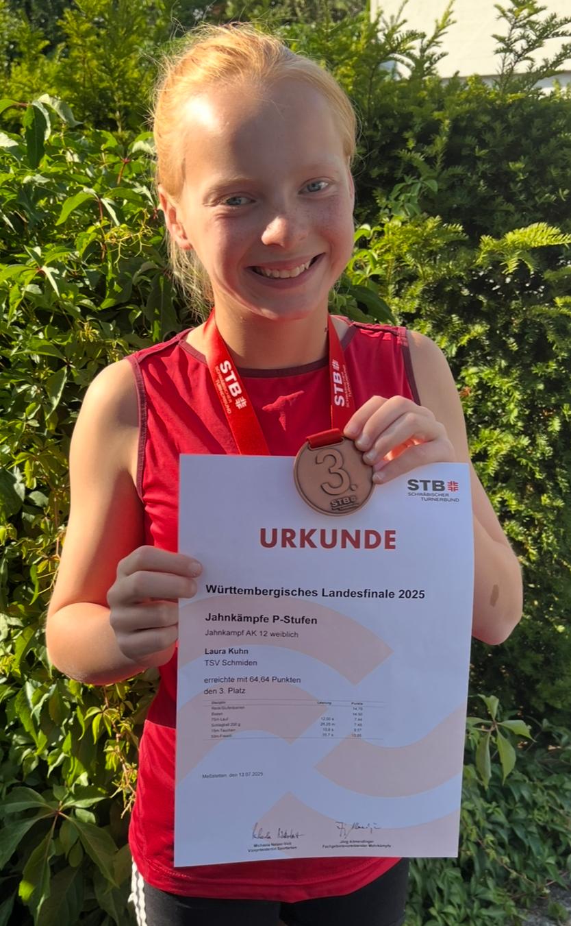 Beim Landesfinale der Mehrkämpfe am 12. Juli 2025 in Meßstetten war der TSV Schmiden mit fünf Turnerinnen vertreten. In den verschiedenen Altersklassen mussten die Teilnehmerinnen sowohl im Turnen (Sprung, Reck, Boden) als auch in der Leichtathletik (Sprint, Weitsprung, Schlagballwurf) ihr Können unter Beweis stellen.