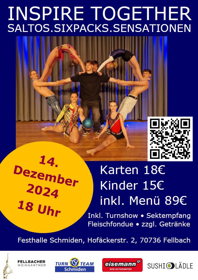 Genießen Sie gemeinsam mit Familie, Freunden oder Kollegen einen zauberhaften Winterabend. Lassen Sie sich mitreißen von unseren SportlerInnen der Schmidener Turnabteilung. Wir bieten Ihnen eine einzigartige Show aus Turnen, Tanz, Gymnastik und Comedy.