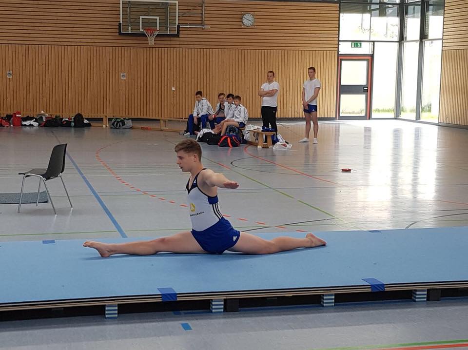 Die Kreisligamannschaft des TSV Schmiden turnte dann am Sonntag gegen die WKG Murr-Erdmannhausen II. Dabei zeigte das breit aufgestellte Team einen soliden Wettkampf an allen Geräten. Für Schmiden II starteten Piet Meßmer, Matthias Winter, Etienne Mang, Marcel Schweiker, Tim Wilde, Chris Hüls und Yannick Neumaier. Zusammen konnten sie alle Geräte für sich entscheiden, lediglich am Sprung mussten sie sich die Gerätepunkte mit der WKG teilen. Hervorzuheben sind die starke Reckübung von Tim Wilde, sowie die durchgehend überzeugende Leistung von Etienne Mang, der mit seiner Punktzahl der beste unter den Sechskämpfern war.