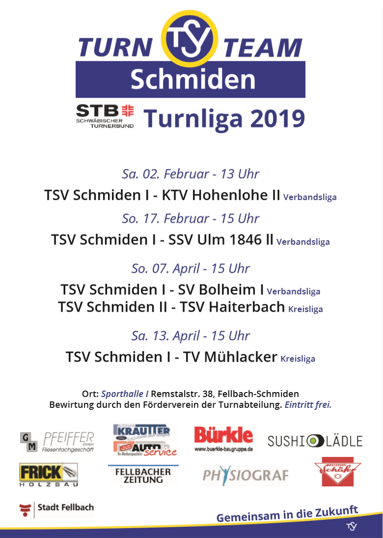 Für den TSV Schmiden sind folgende Turner gemeldet: