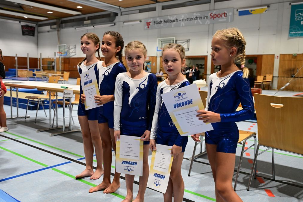 In der E-Jugend (Jahrgänge 2016/2017) traten Annika Behr, Rossana Aurora Catizone, Lenke Hertlik, Esmé Valtach und Romy Hospach an. Auch hier gab es Wettkampfdebütantinnen, die sich mutig der Herausforderung stellten. Am Ende stand Platz 8 zu Buche. Romy Hospach überzeugte mit einem sehr starken Wettkampf und erzielte die drittbeste Vierkampfwertung der gesamten Altersklasse.