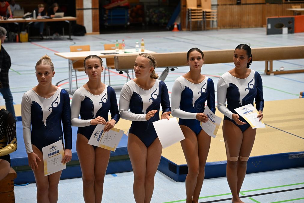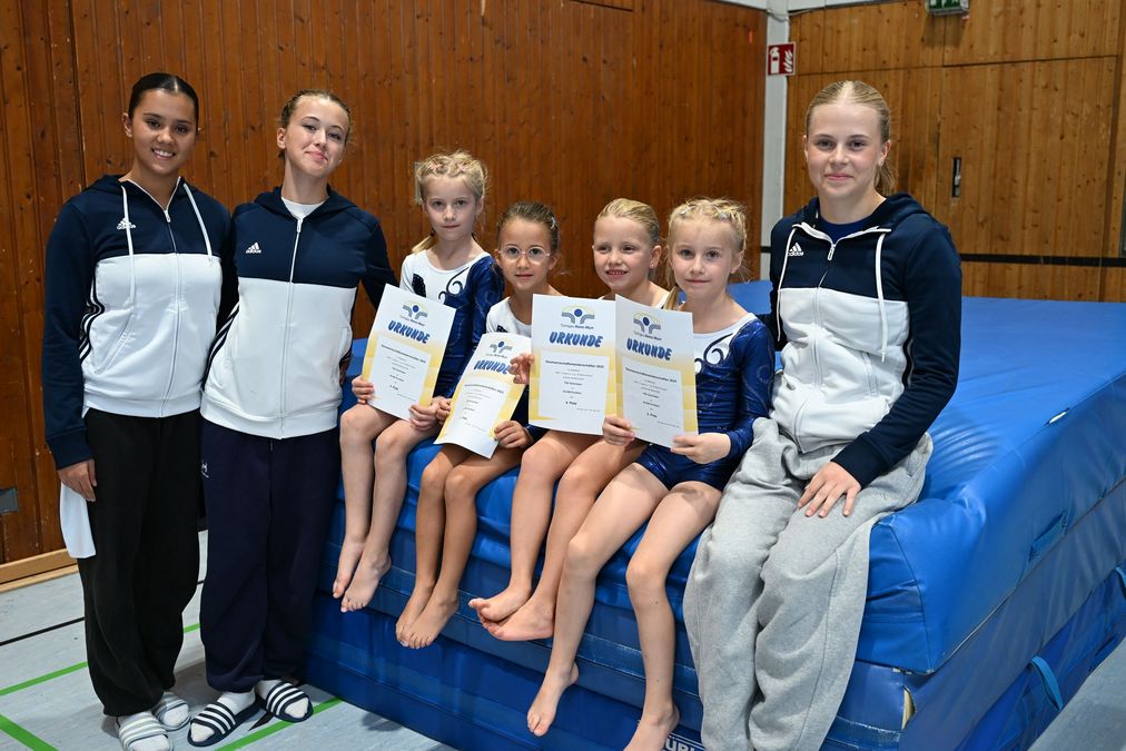 Sophia Asena Aslantas, Pauline Celestine Biedermann, Klara Kojic, Laura Marie Münsch, Viola Pagano, Niva Rudes und Charlotte Thome turnten sich mit einer starken Teamleistung auf den 1. Platz, mit nur 0,1 Punkten Vorsprung! Besonders herausragend: Charlotte Thome erzielte die beste Einzelwertung des gesamten Wettkampfes. Herzlichen Glückwunsch zur Goldmedaille!