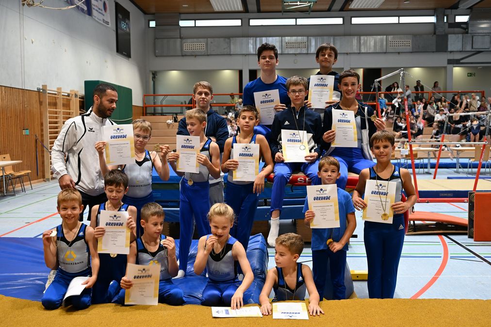 Parallel traten auch unsere Jungenmannschaften an. Leider hatten sich in den Altersklassen keine weiteren Vereine gemeldet – der TSV Schmiden war der einzige Starter. Das tat der Motivation jedoch keinen Abbruch: Unsere Jungs zogen den Wettkampf voll durch und zeigten saubere Übungen an allen Geräten.