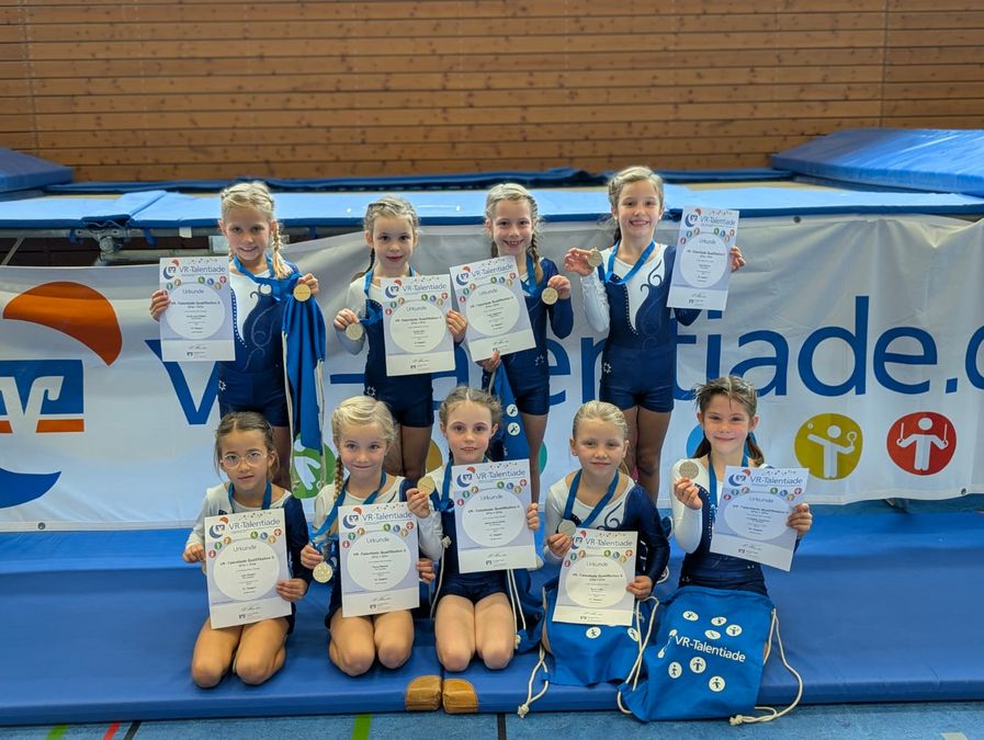 Am Freitag, den 25. Oktober, stand für unsere jüngsten Turnerinnen und Turner die Teilnahme an der VR-Talentiade in Wetzgau auf dem Programm. In einem breit angelegten Wettbewerb stellten die Kinder der Altersklassen 6 bis 9 ihr turnerisches Talent unter Beweis – und das in einem besonderen Format: Neben turnerischen Übungen wurden auch athletische und koordinative Fähigkeiten in Disziplinen wie Seilspringen, Sprint, Sit-ups, Kraft- und Beweglichkeitstests geprüft.